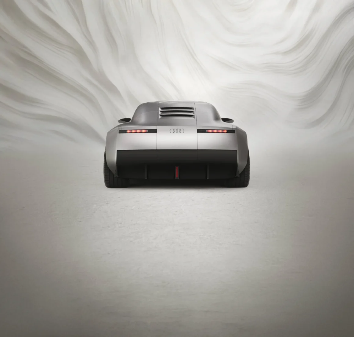 Bár ez egyelőre csak egy tanulmányautó, és ahogy megszoktuk, az egyes országok közúti és hatósági szabályozásai beleszólhatnak a dizájnba, az autó orrát egy függőleges keret határozza meg, ami az 1936-os Auto Union Type C versenyautót idézi meg amellett, hogy újraélrtelmezi a márka progresszivitását. Az új fényszignatúra pedig egy könnyedén felismerhető karaktert ad szemből, éjjel és nappal egyaránt.