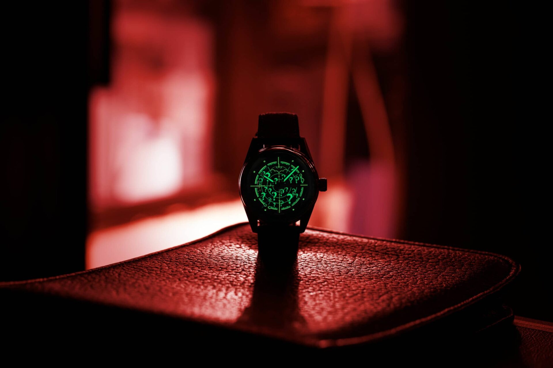 A számlap hihetetlenül jól tükrözi a 60-as évek Batmobilját, kezdve a görbe kristálytól, amely a golyóálló szélvédőt imitálja. A fekete számlapot a gumiabroncsok mintázata díszíti, míg a piros célkereszt és a dombornyomott indexek a Batmobil műszerfalán található Detect-A-Scope-ra emlékeztetnek, amelyet az ellenség mozgásának észlelésére használtak a sötétben. Ennél a tematikus megközelítésnél még drámaibb ábrázolás a számlapon Batman főellenségének jellegzetes kérdőjelei, amelyek sötétben zölden világítanak.